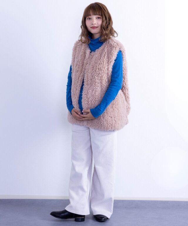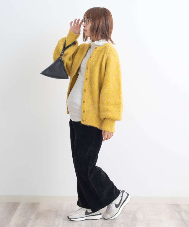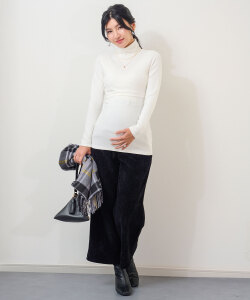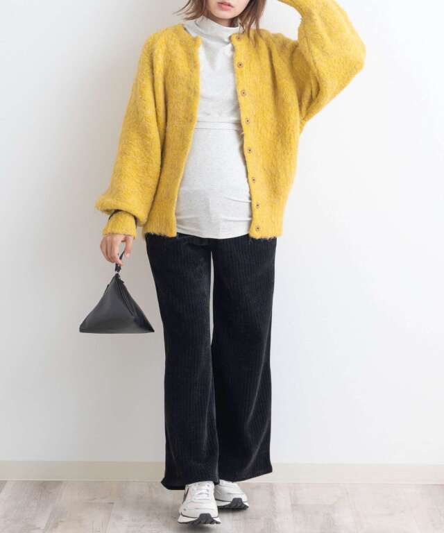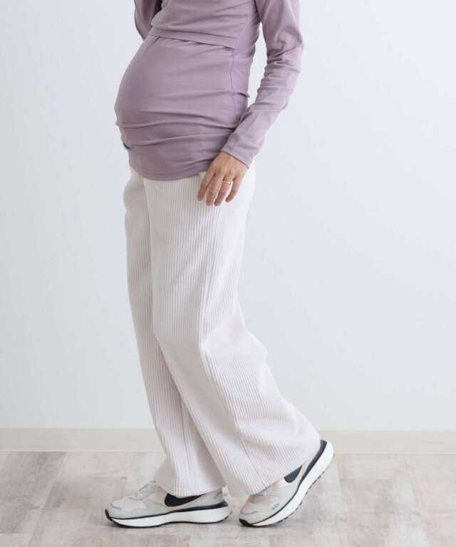 太畝のコーデュロイとまるで毛布のようにみっちりと敷き詰められた裏起毛の組み合わせは、重ね履きいらずの極暖。お腹部分は臨月のお腹でもすっぽりと包み込むストレッチで、抜群の穿き心地。