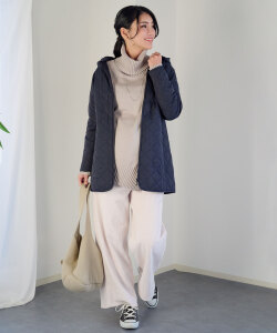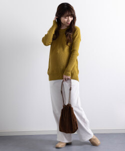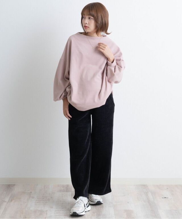きれいなシルエットなので、スウェットやビッグシルエットのロンTなどゆるいシルエットのトップスをあわせても、すっきりとしたスタイリングに◎