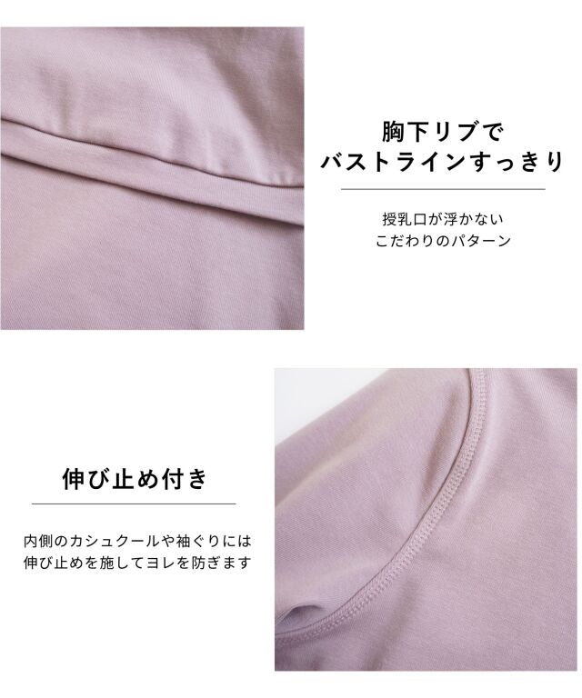よく伸びて臨月の方でも楽々着られるので、妊娠中から長くお使いいただけます。