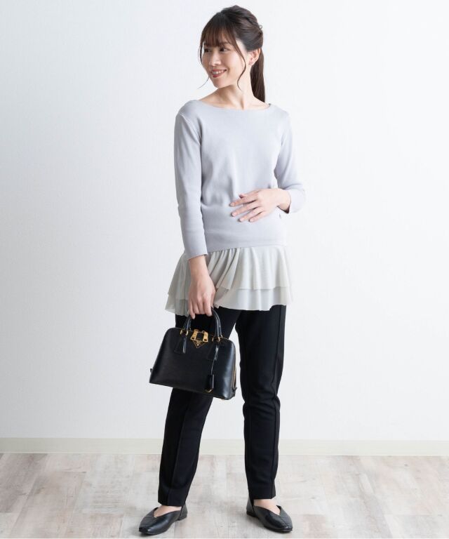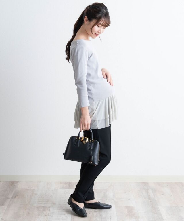 抜群のストレッチ性で産前から産後まで長く着回せ、お腹まですっぽりと包み込みます。