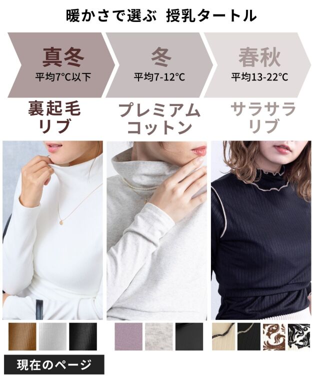 寒い冬の授乳中でもお腹を守ってくれるタートルトップス。