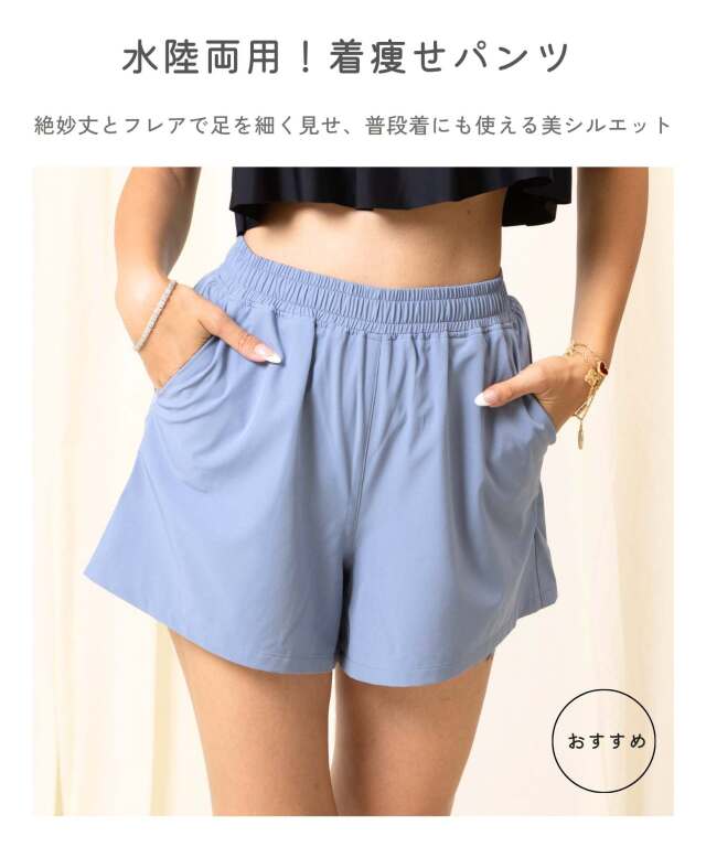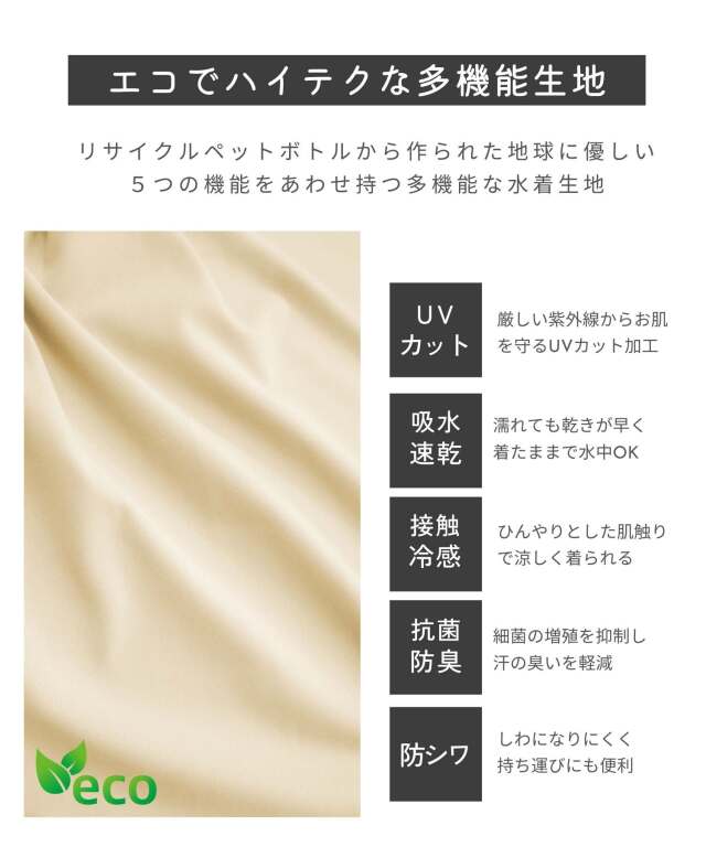露出少なくおしゃれに体型カバーでき、プールや海などの水遊びから、公園などのデイリースタイルにも活躍します。