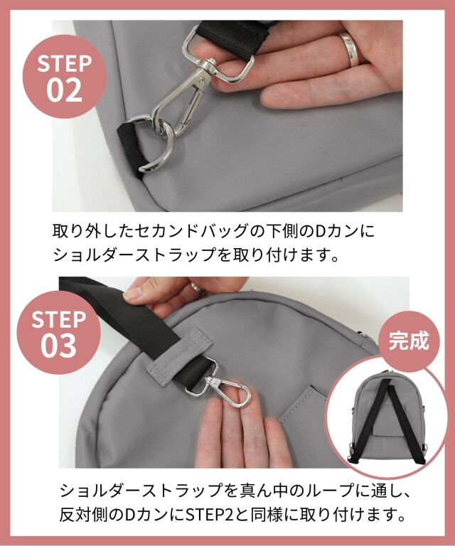写真だとサイズ感がいまいちわからず不安でしたが、背負ってみたらピッタリでオシャレで満足です。ドッキング型ですが、やはりちょっと分かれて見えるのは残念かな。