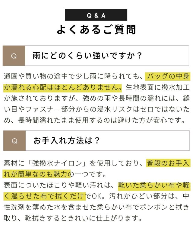※雨や水に濡らした場合は、素早く乾いた柔らかい布で水気を取り、形を整えて必ず陰干ししてください。