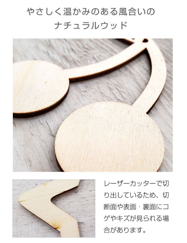 ●壁に貼る際、粘着力が強いテープを使用すると、壁紙やガーランドの表面が剥がれる恐れがありますのでご注意ください。 ●多少色味や木目の模様が異なる場合がございます。 ●レーザーカッターで切り出しているため、切断面や表面・裏面にコゲやキズが見られる場合があります。 ●木製品のため、強い力を加えると破損やケガなどの原因になります。 ●材質の特性上、まれに切断面などに欠け・トゲ・ささくれなどが発生する場合がございますのでご注意ください。 ●水濡れや、湿気が多い状態でご使用や保管をされますと色落ちや色移りの恐れがあります。ご使用後は水洗い等はせず乾いた布でお手入れください。 ●塗料で塗装しておりますので、お子様などが誤って口に含まないよう充分にご注 意ください。 |