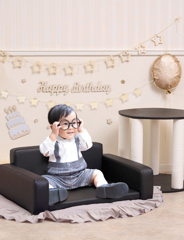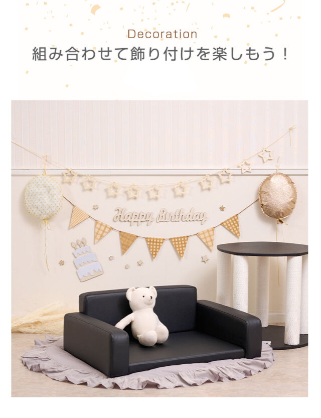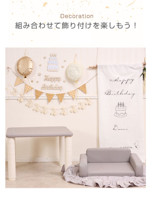 ソファ / マット / サイドテーブル / バースデーバナー / 星ガーランド / 三角ガーランド