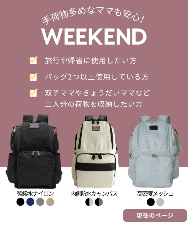 | 製品名: | マザーズリュック ビックサイズ(23L) 【WEEKEND】メッシュ マザーズバッグ/ママバッグ |