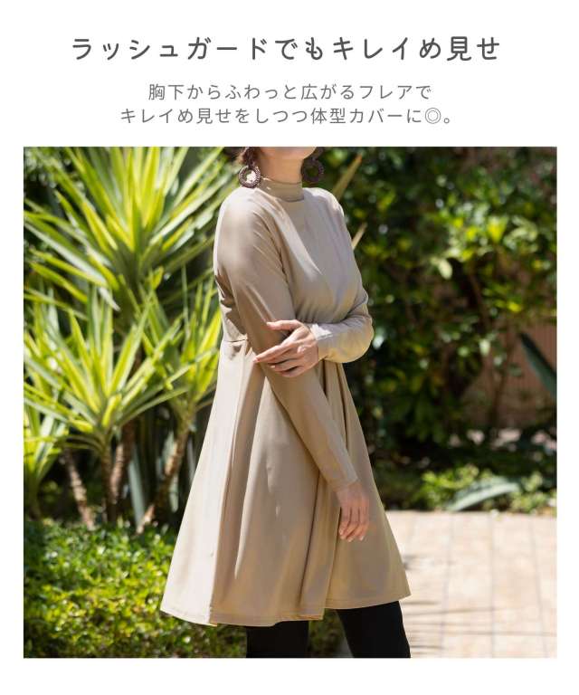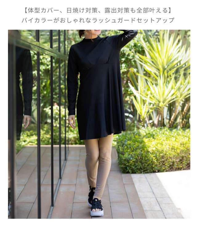 水着 ラッシュガード スイムウェア ワンピース 無地 キレイめ かわいい カジュアル シンプル 体型カバー 日焼け対策 海 プール 水遊び 自由の水着 セット 上下セット レギンス【カラー】ブラック/ベージュ/