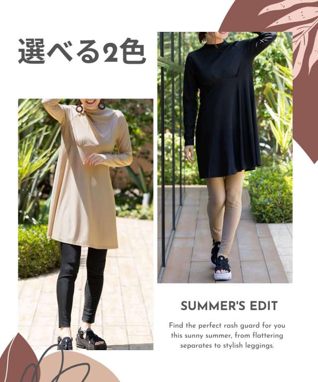 水着の上に着るだけ!ラッシュガードワンピース&レギンスセット