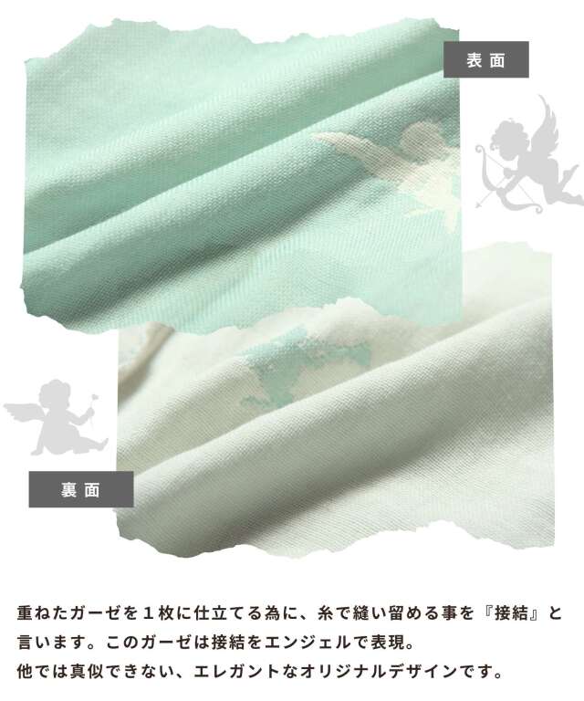 接結で描かれたエンジェルモチーフが上品で、職人技が光るこだわりの一枚です。