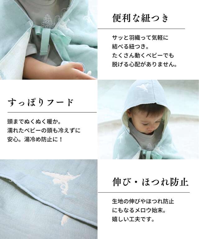 【3】日本製 6重ガーゼ フード付きバスタオル