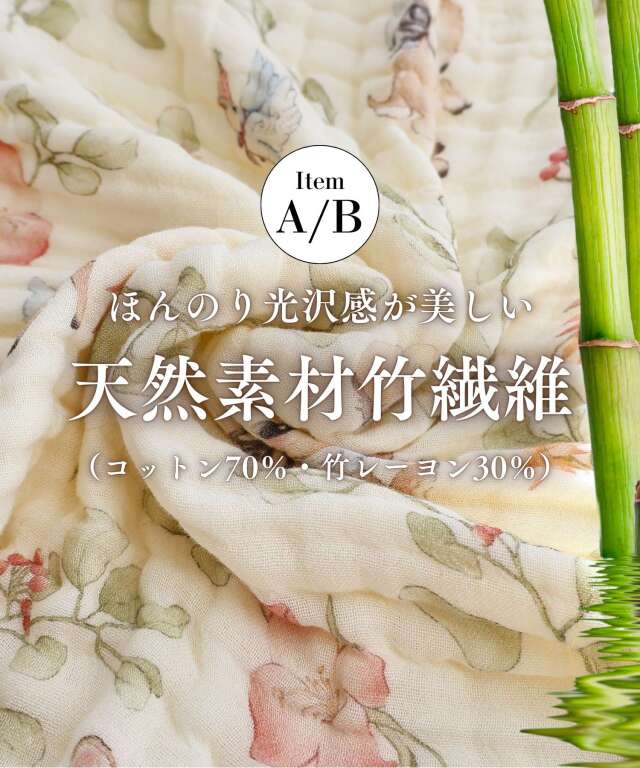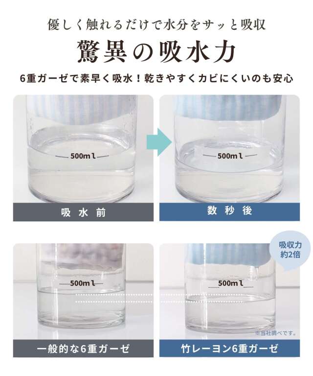肌触りが優しく、吸水性に優れた6重ガーゼタオルです。竹繊維を織り込むことで、天然の抗菌作用もあり、清潔に長時間使用できます。6重構造により、ふわっとした柔らかさと弾力感が感じられ、肌に優しく触れるので、赤ちゃんや敏感肌の方にも安心してお使いいただけます。通気性にも優れており、洗濯しても乾きやすく、常に爽やかな使用感が叶います。大判サイズなので、バスタオルやおくるみ・ガーゼケットとしてもご使用いただけます。