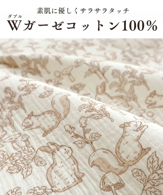 素肌に優しいコットン100%のダブルガーゼで柔らかな肌触り。