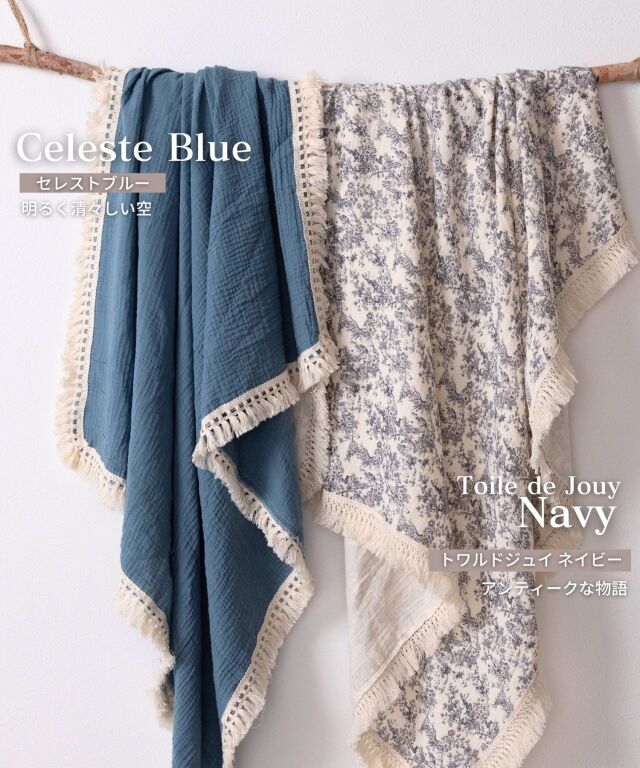 ダブルガーゼ ベビー おくるみ 大判 ガーゼ コットン100% フリンジ タオル 赤ちゃん ひざ掛け おくるみ くすみカラー 2重ガーゼ 日よけ ブランケット かわいい 速乾 吸水性 通気性 出産祝い ギフト プレゼント お祝い 出産祝い オーガニック 綿 敏感肌 無地 花柄 星柄 トワルドジュイ【カラー】ベージュ/グリーン/ブルー/ネイビー/グレー/