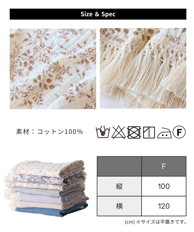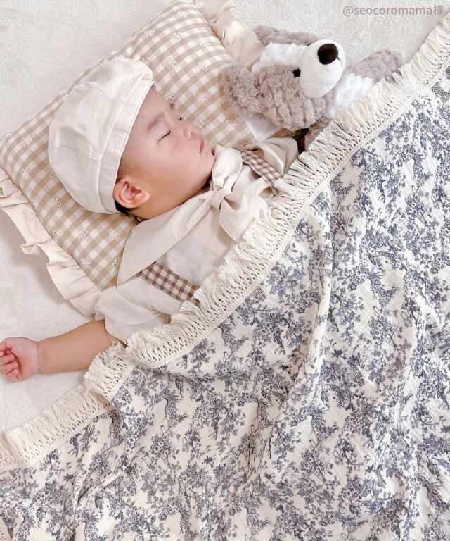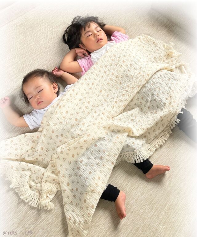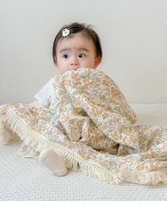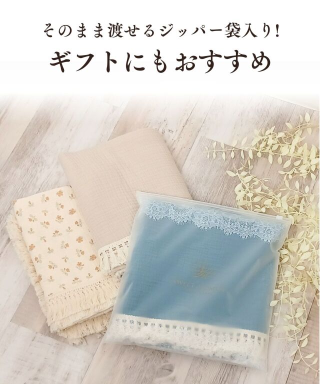 いつもそばに置きたくなるおしゃれなデザインも魅力。大判サイズなので、おくるみに、お昼寝に、ひざ掛けに、お出かけ時の日よけにと、あらゆるシーンにお使い頂けます。