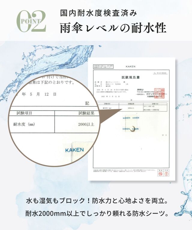※防水敷きカバーの防水力について動画でご覧いただけます。サンプルになりますので、裏地が少々異なります。