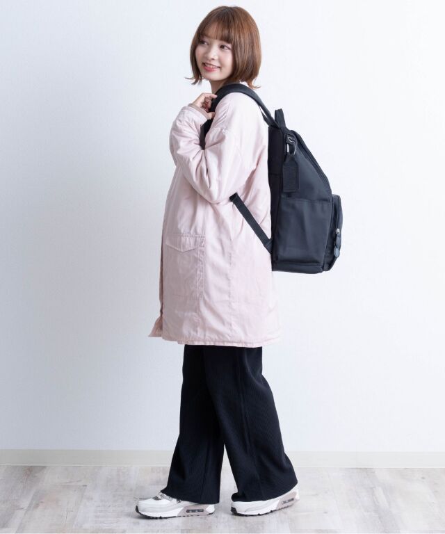 首元すっきりデザインなのでパーカーのフードを出してもかわいい!