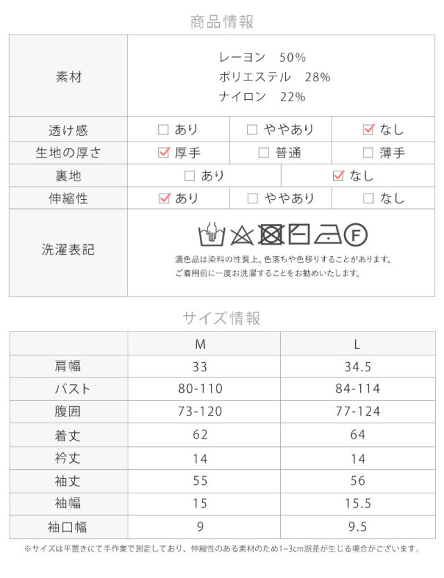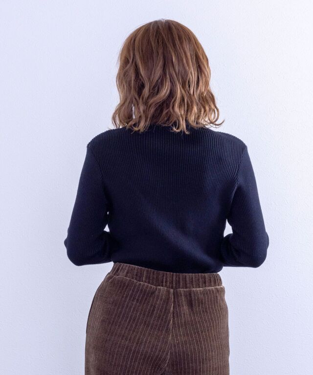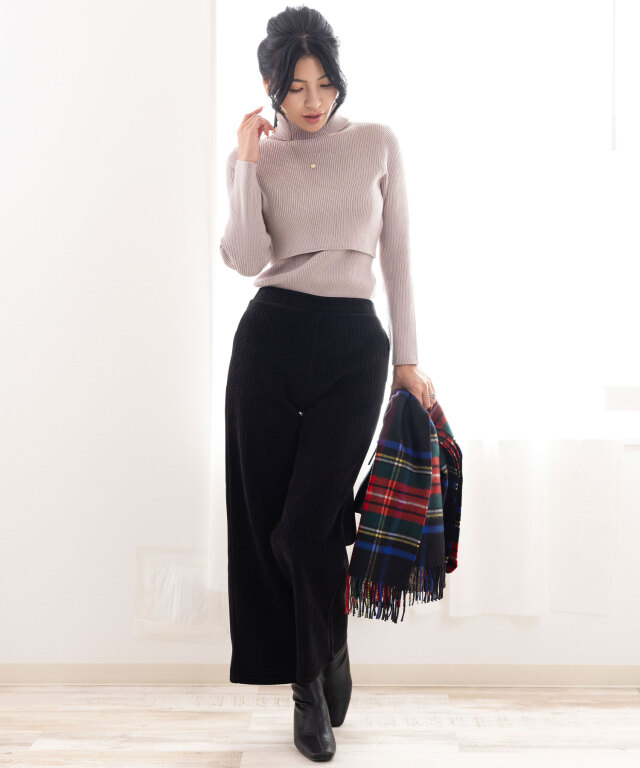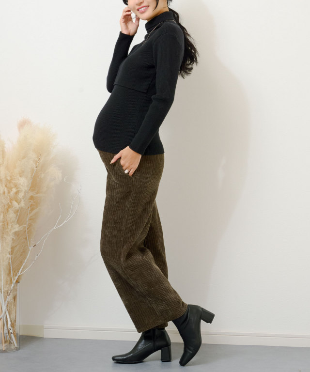 伸縮性のよいリブ編みで妊娠中から長くお使いいただけます。