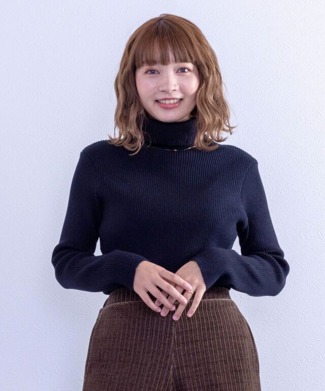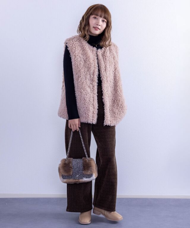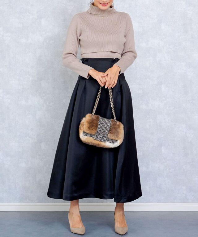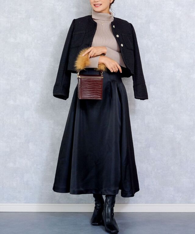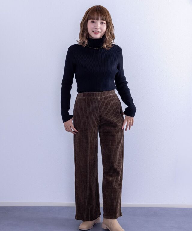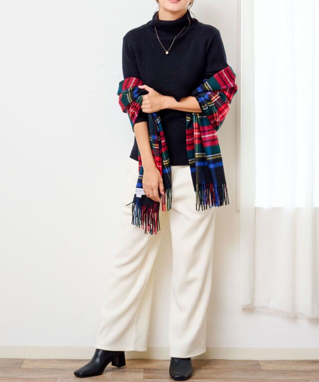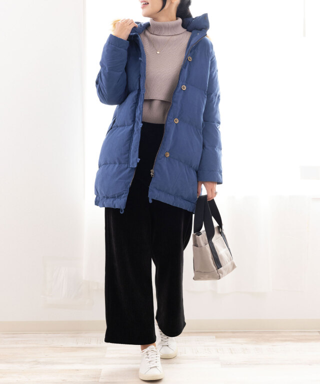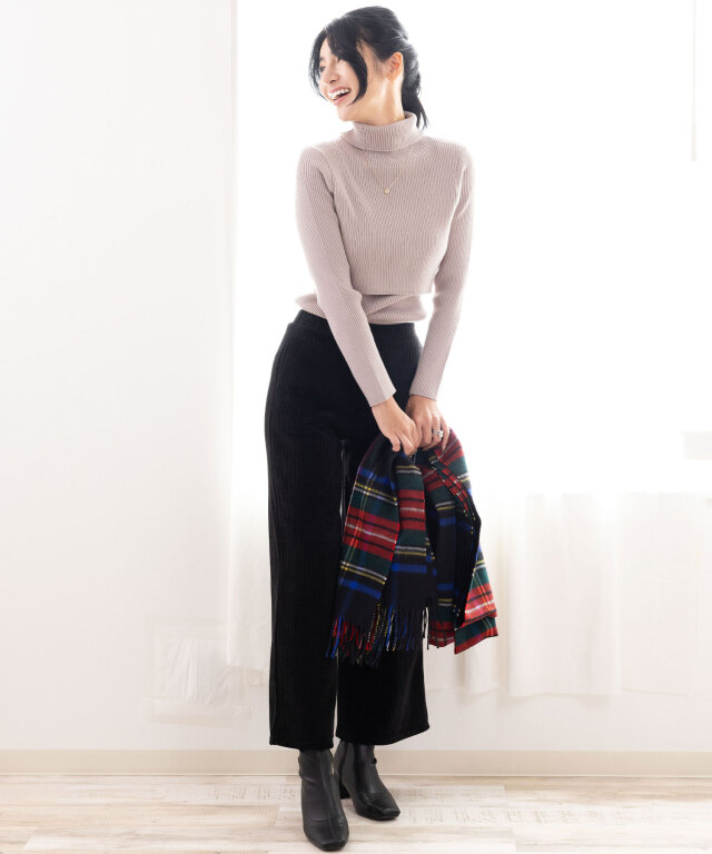 たっぷりボリュームのタートルネックは顔回りとすっきりと見せてくれます。