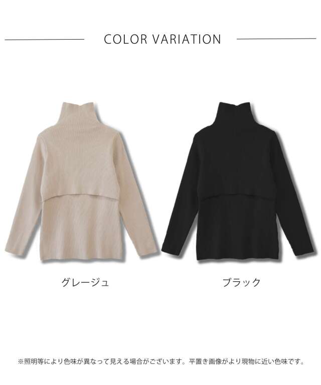 マタニティ マタニティウェア 授乳服 産前産後 長袖 ざっくりニット タートルネック リブニット 敏感肌 お出掛け トップス ニット セーター 秋 冬 秋冬 秋服 冬服【カラー】グレージュ/ブラック