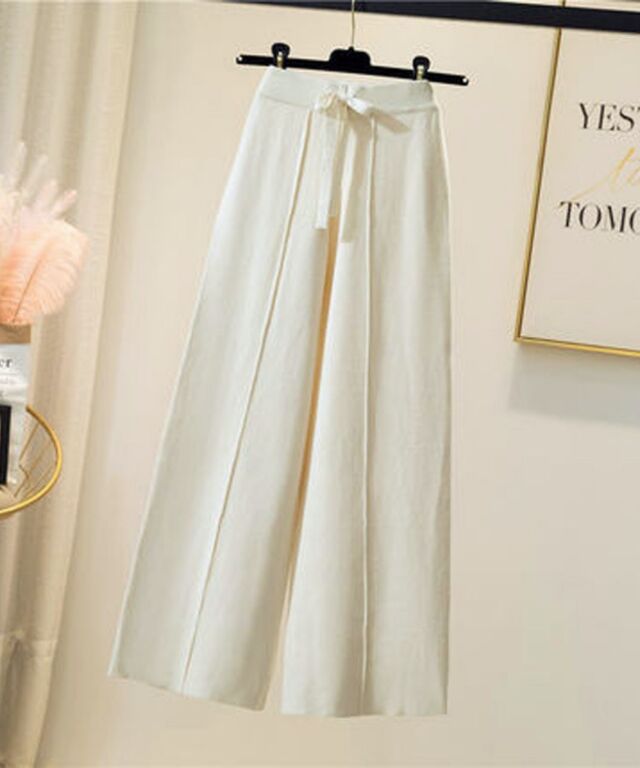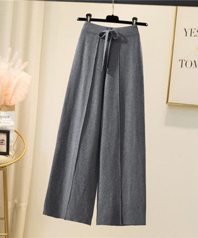 学校行事や、お仕事などにも穿きまわせるニット素材のきれいめワイドパンツです。