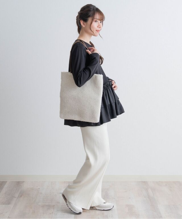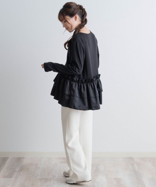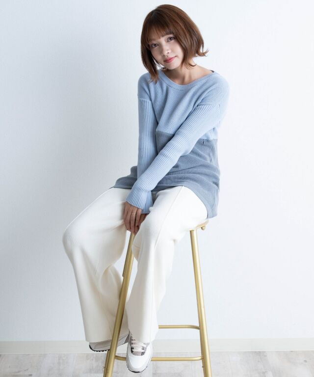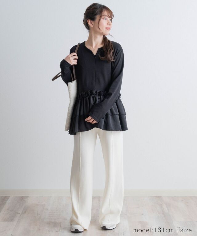 デザイントップスやボリュームのあるニットを合わせてゆるっとした着こなしもお楽しみいただけます。