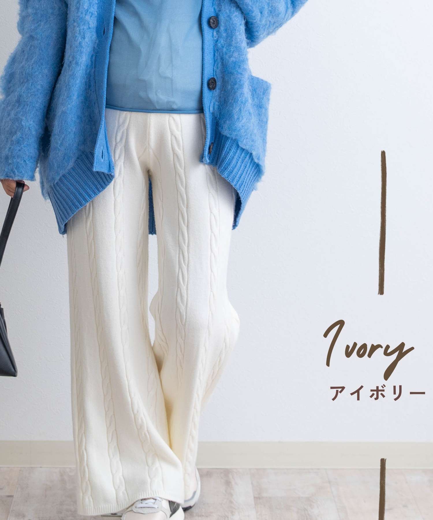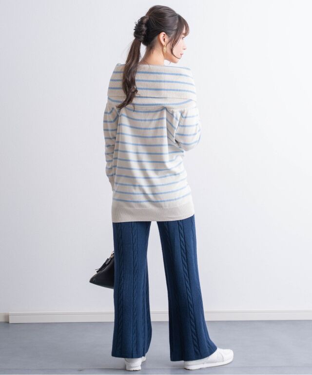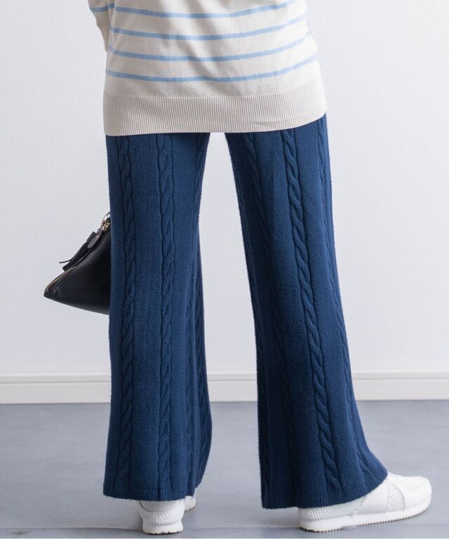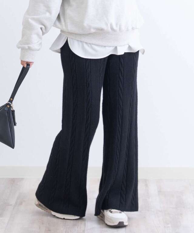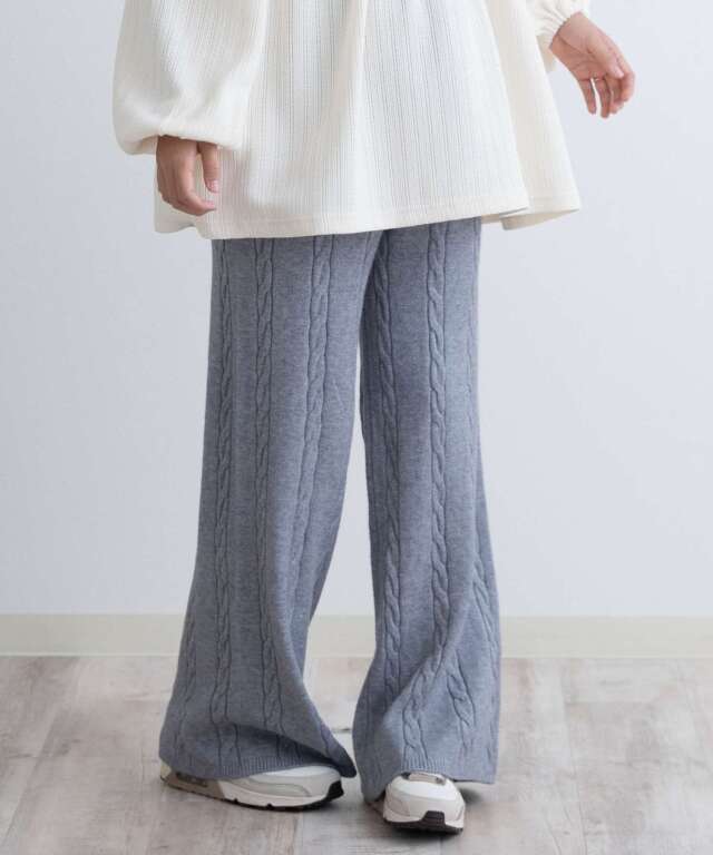 立体感のあるケーブル編みが目を引くニットパンツです。