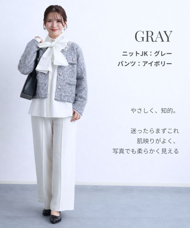 【グレー/ベージュ】ジャケット単品販売ページはこちら / 【ブラック/ホワイト】ジャケット単品販売ページはこちら / ワイドパンツ単品販売ページはこちら