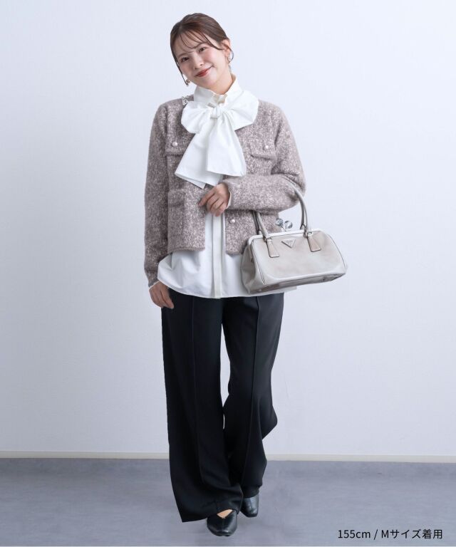 柔らかくふんわりとした編み地で、軽やかな着心地ながら上品な存在感を演出します。