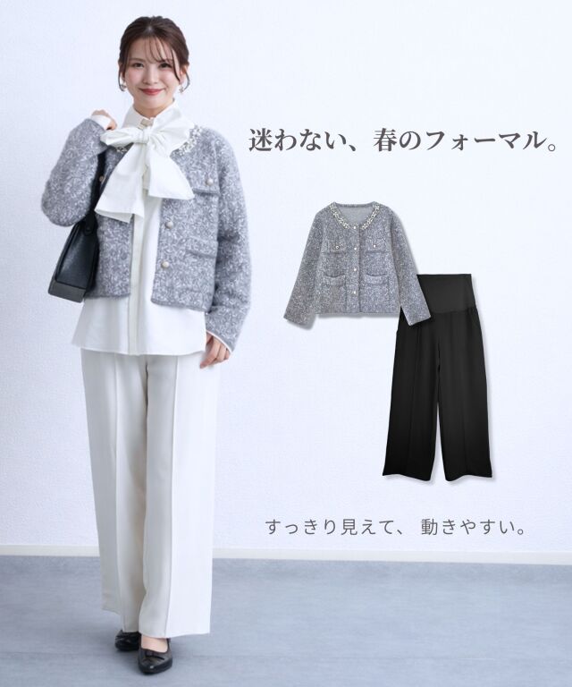 マタニティ マタニティウェア 産前 産後 産前産後兼用 臨月 きれいめ 上品 おしゃれ 大人可愛い 妊婦服 ゆったりサイズ ポケット 無地 ツイード風 体型カバー 着痩せ 脚長 美脚 妊婦 ママ 母親 春服 秋服 フォーマル カジュアル 入卒園 入学式 卒業式 入園式 卒園式 結婚式 通勤 おでかけ お仕事 通勤服 お宮参り ハレの日 学校行事 授業参観 お食い初め ママスーツ スーツ オフィス セレモニー オケージョン 仕事 ジャケット ニット ビジュー ビジュー刺繍 ブレード ブレード装飾 アウター 羽織り 長袖