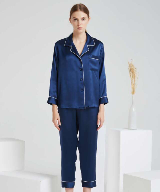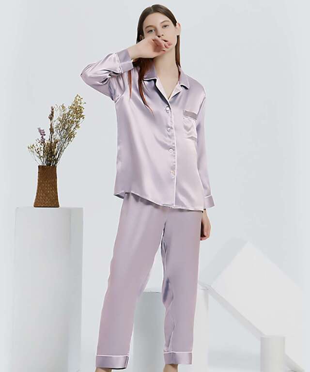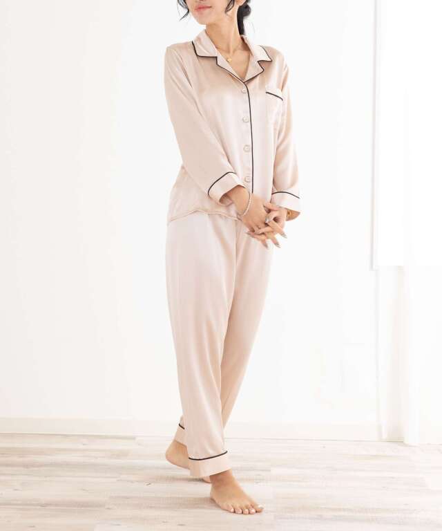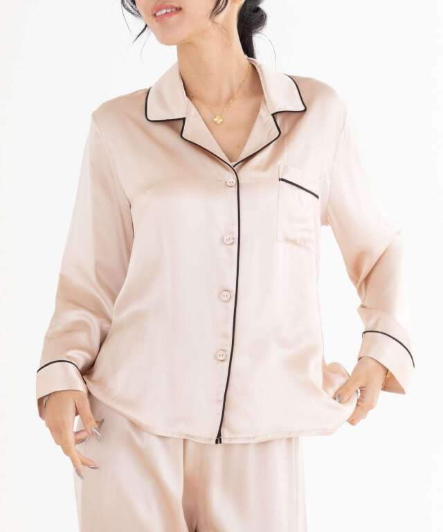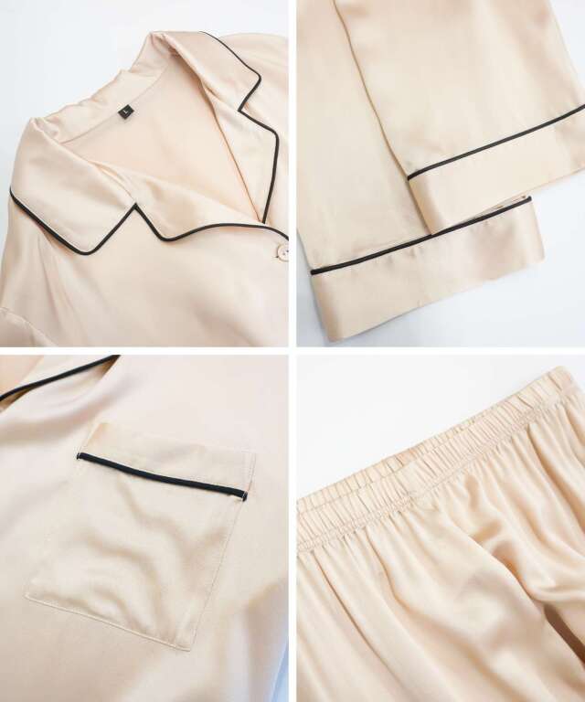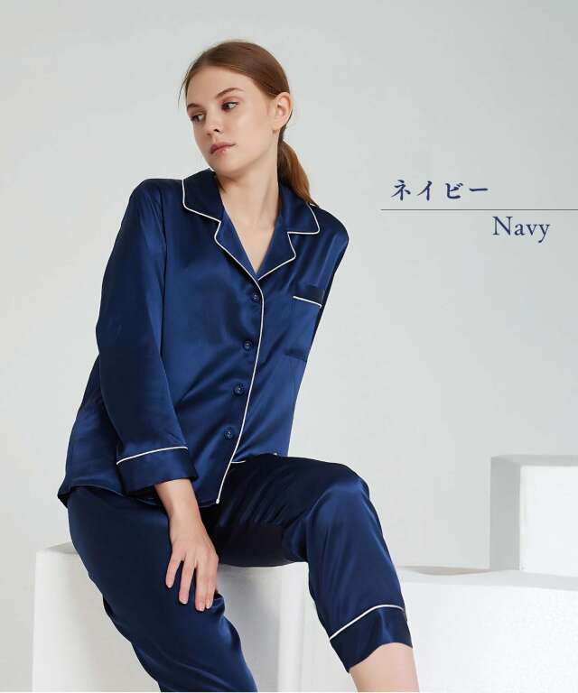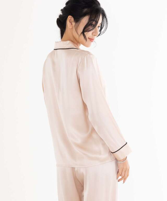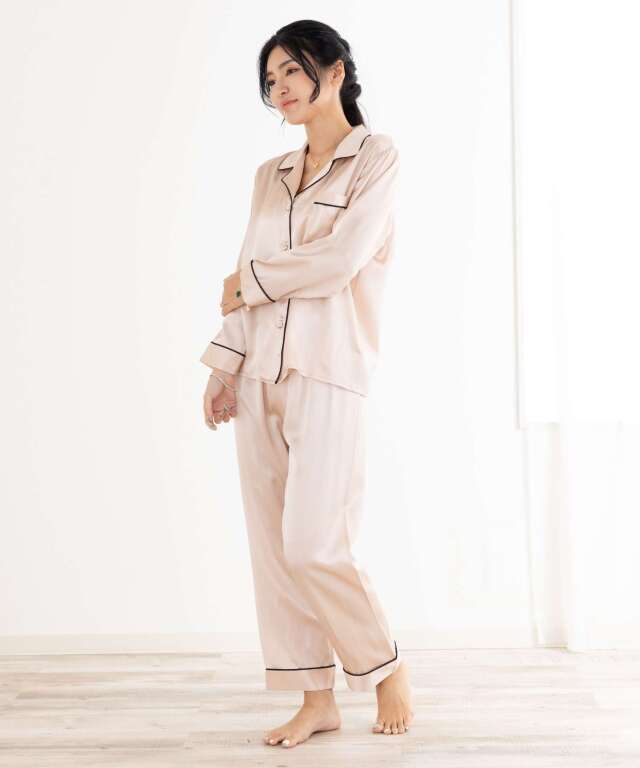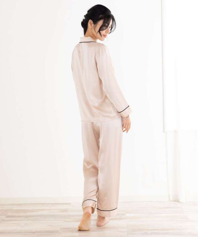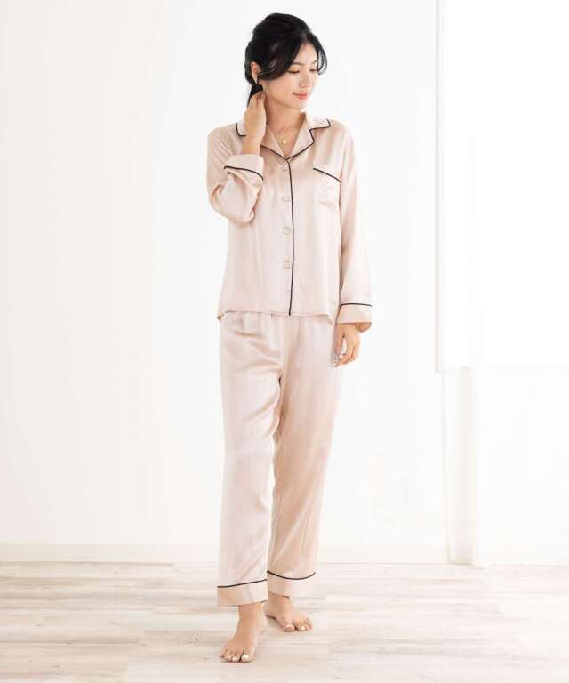 シルク100%の肌触りが贅沢な軽く柔らかいパジャマです。