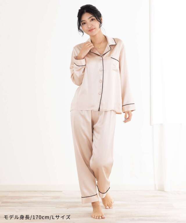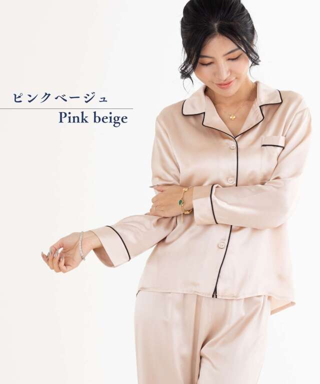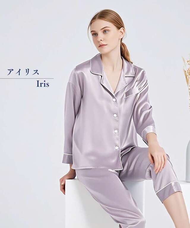 シルク パジャマ シルク100% 6A 前開き 長袖 ナイトウエア ルームウエア ナイティ 軽い 軽量 19匁 絹 睡眠 安眠 快眠 レディース 女性 シルク製 保湿 保湿 涼しい 敏感肌 上下セット セットアップ 襟付き ウエストゴム 春 夏 秋 部屋着 寝巻 おしゃれ 上品 高級感 プレゼント ギフト 母の日【カラー】ピンクベージュ/アイリス/ネイビー
