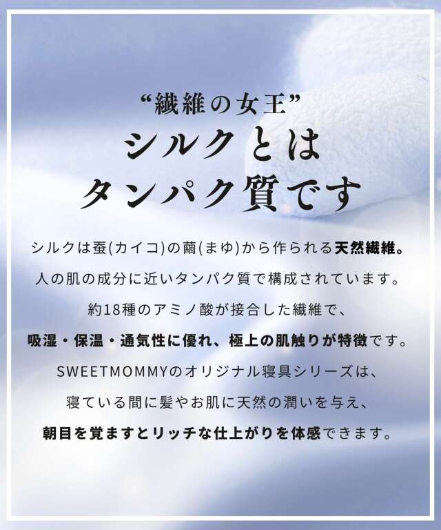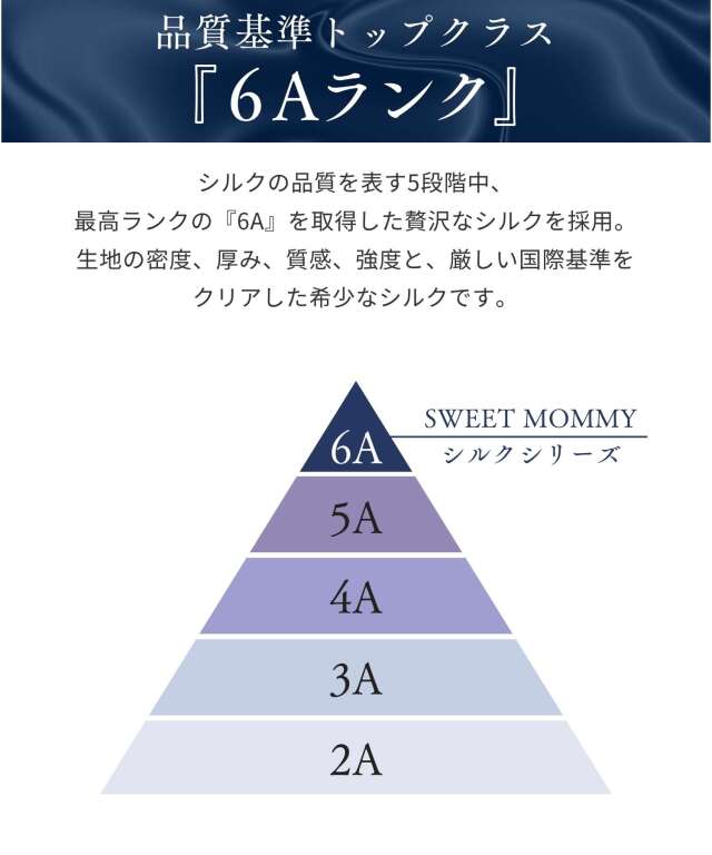 シルクの品質を表す5段階中、最高ランクの『6A』を取得した贅沢なシルクを採用。