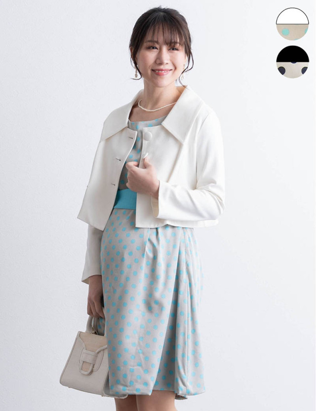 コクーンスリーブジャケット+Vネックワンピースセットアップ