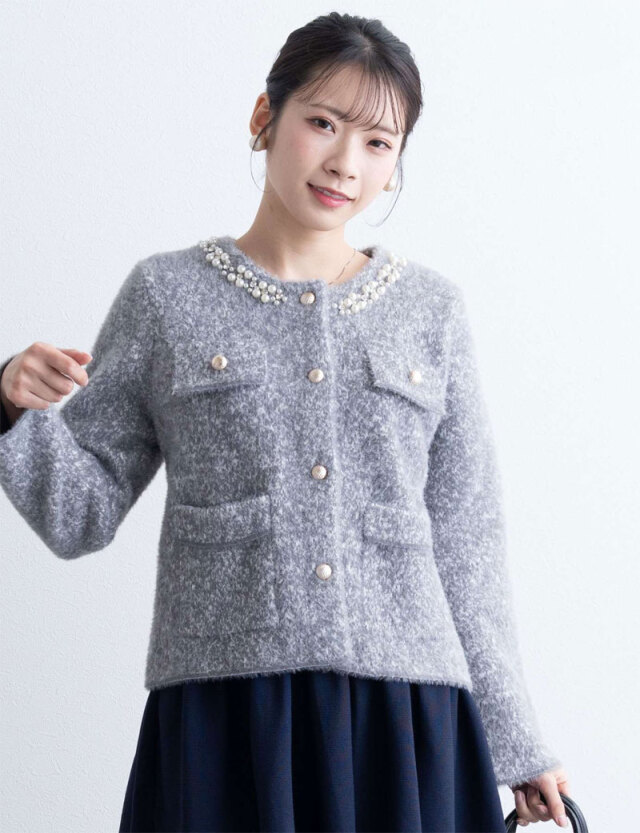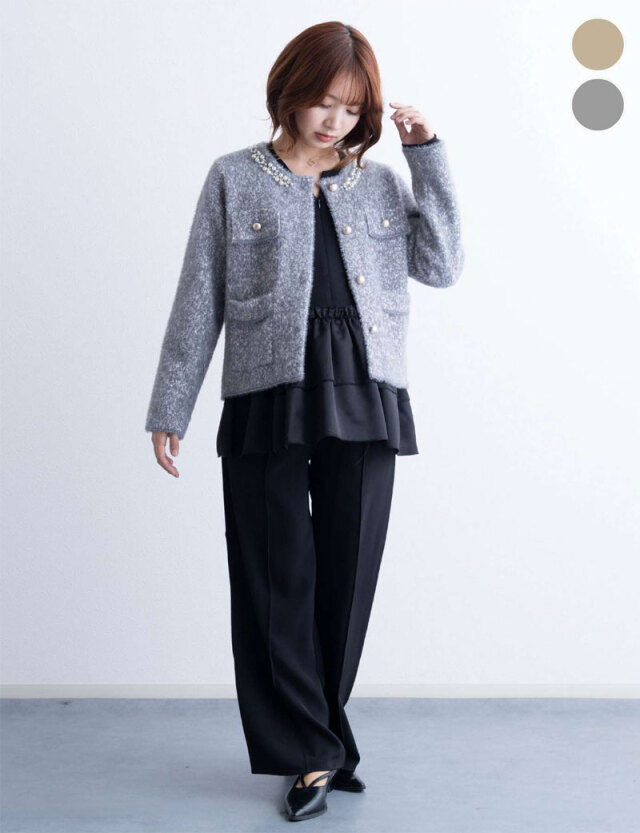 ニットノーカラージャケット+ マタニティワイドパンツセット