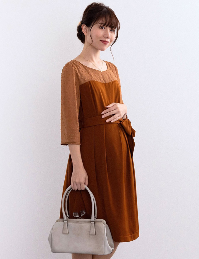 付け襟&カフス エレガント ワンピース ~妊娠中期・卒乳後ママ専用