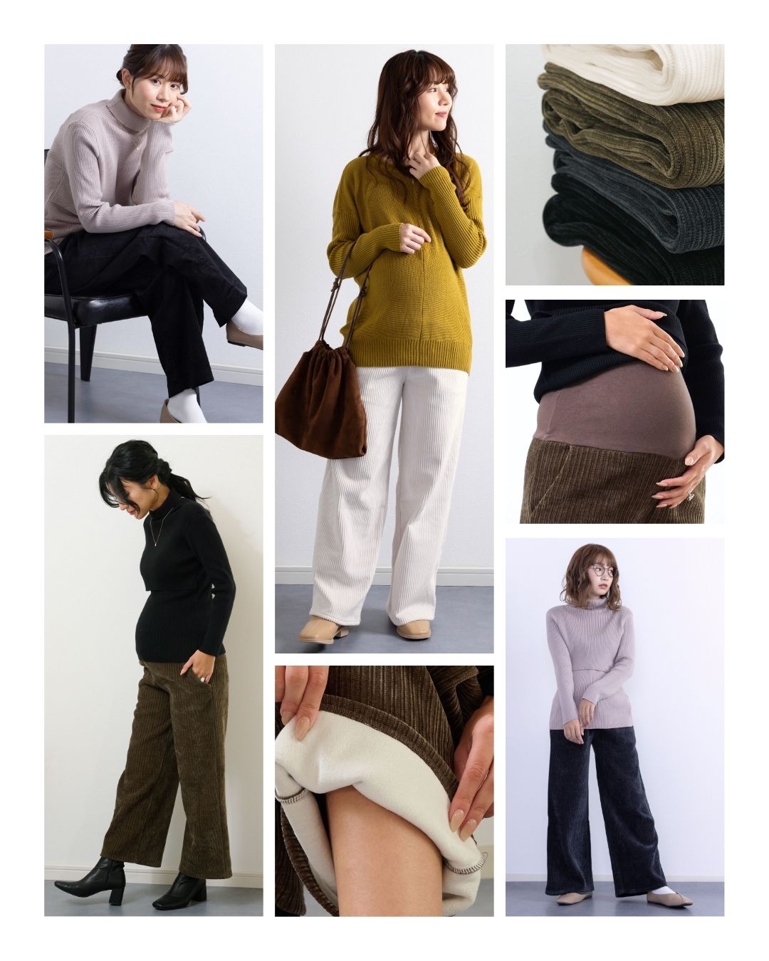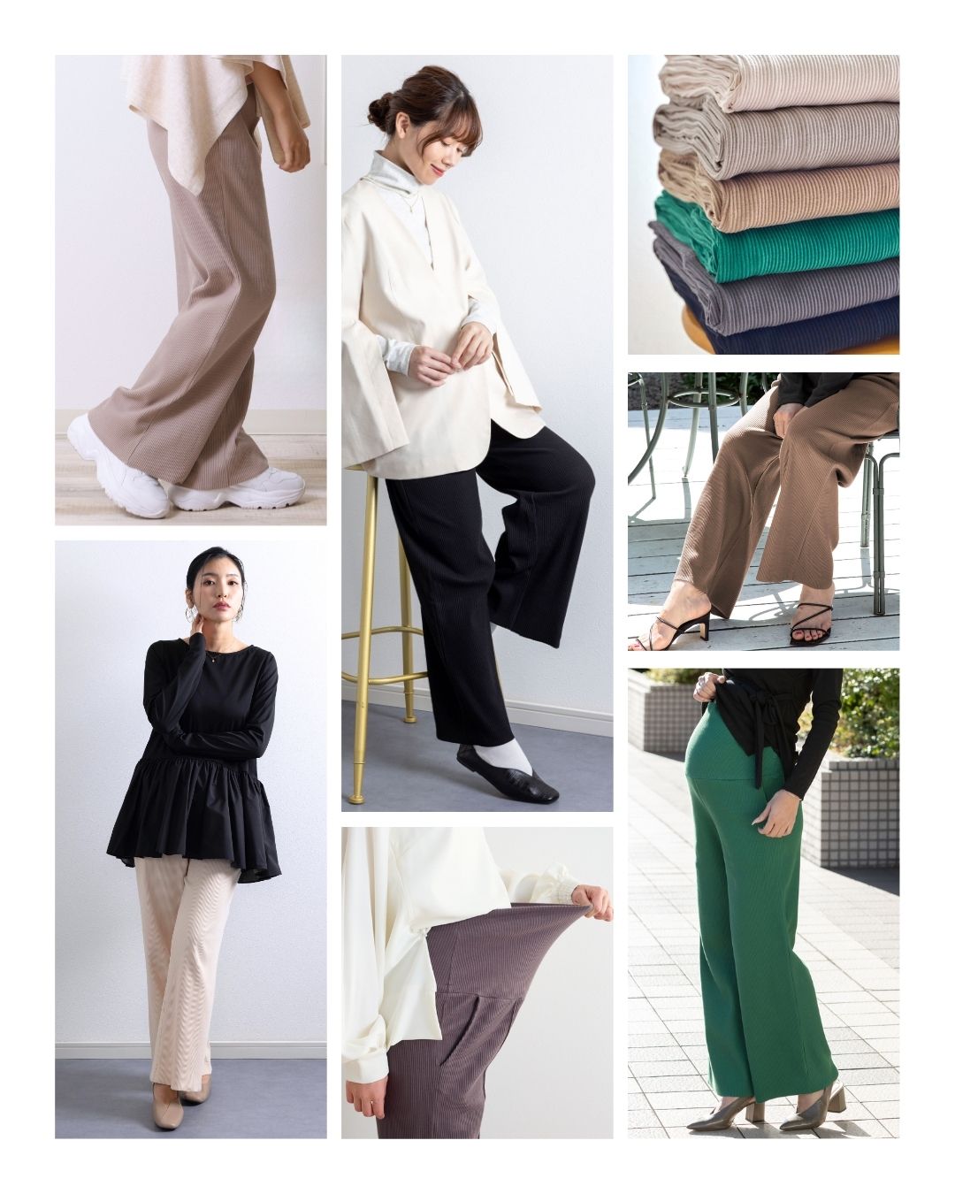 やわらかで暖かい。ON/OFF問わず使えるニットパンツ。お腹の切替をなくしたデザインで、妊娠中のシャツインコーデや産後もそのまま使えます。